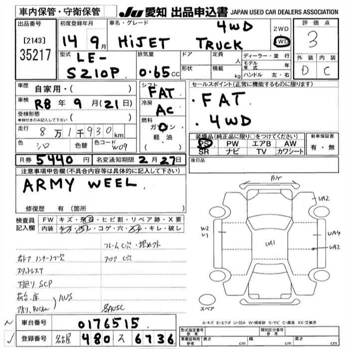 Статус продан Лот 35217 Аукцион JU Aichi Дата аукциона 29.01.2026