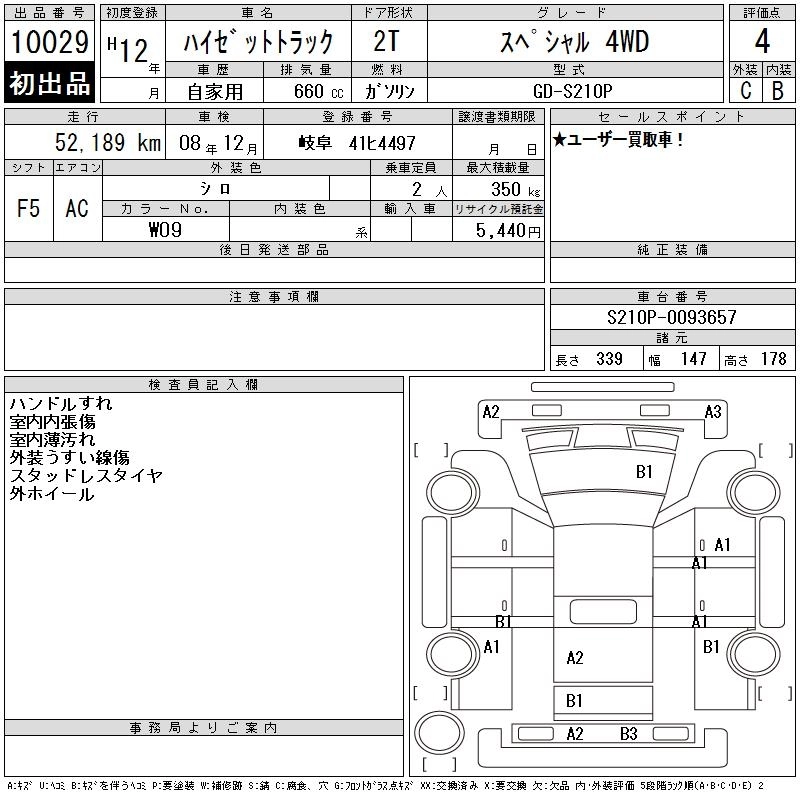 Год выпуска2000 Пробег 52 000 км КузовS210P Комплектация SPECIAL 4WD