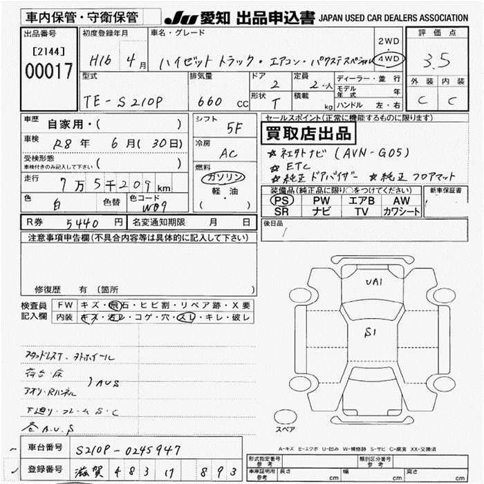 Год выпуска2004 Пробег 75 000 км КузовS210P КомплектацияA/C P/S SPECIAL 4WD