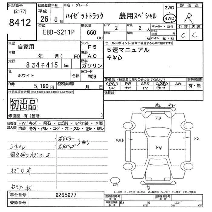 Год выпуска2014 Пробег 84 000 км КузовS211P Комплектация4WD NOUYOU SPECIAL