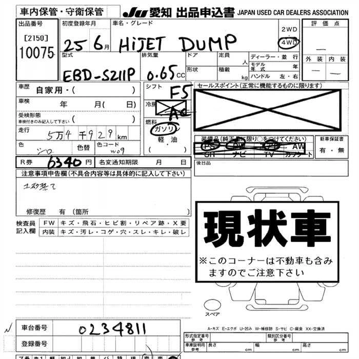 Статус продан Лот 10075 Аукцион JU Aichi Дата аукциона 19.03.2026