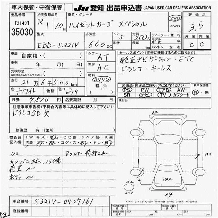 Статус выставлен на аукцион Лот 35030 Аукцион JU Aichi Дата аукциона 29.01.2026