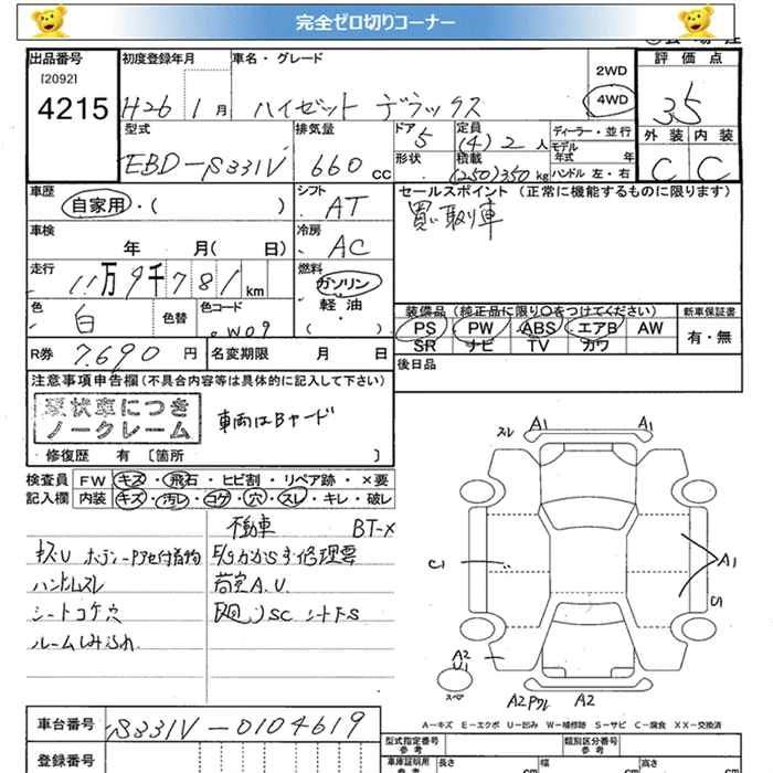 Год выпуска2014 Пробег 120 000 км КузовS331V Комплектация4WD DELUXE