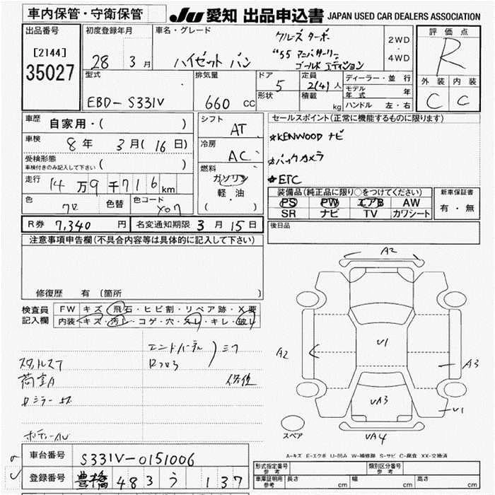 DAIHATSU HIJET VAN 2016 г., лот № 35027