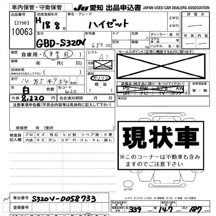Статус продан Лот 10063 Аукцион JU Aichi Дата аукциона 19.03.2026