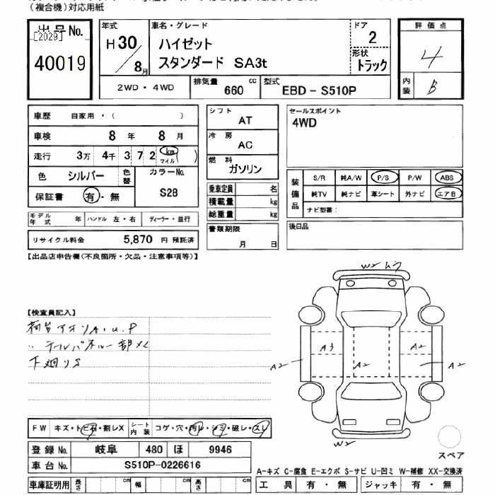 Год выпуска2018 Пробег 34 000 км КузовS510P Комплектация4WD STANDARD SA3T