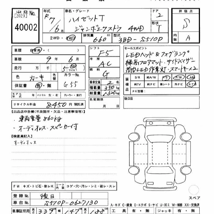 Год выпуска2025 КузовS510P Комплектация4WD JUMBO EXTRA