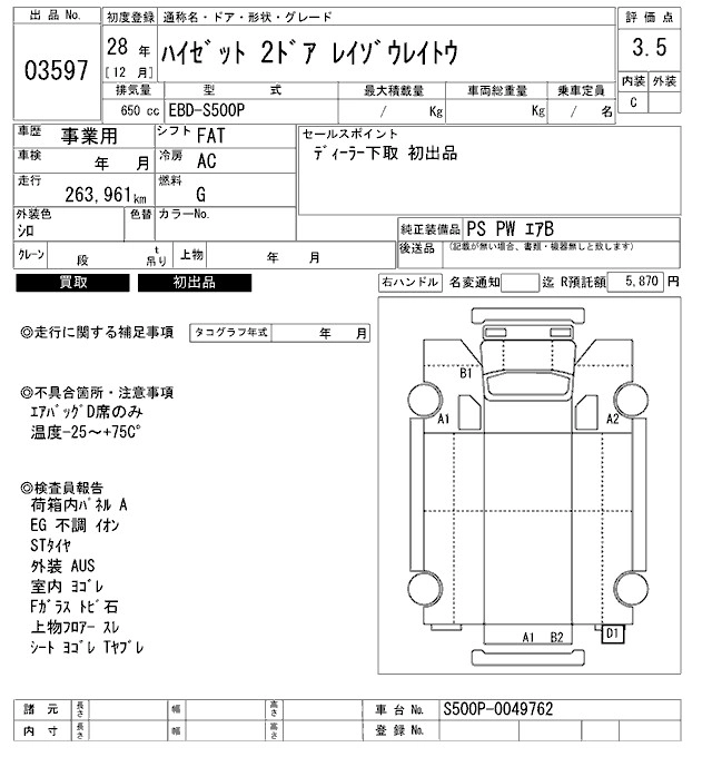 DAIHATSU HIJET 2016 г., лот № 3597
