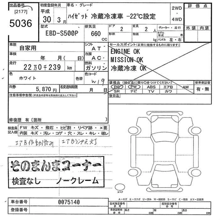 Статус выставлен на аукцион Лот 5036 Аукцион JU Tokyo Дата аукциона 16.03.2026