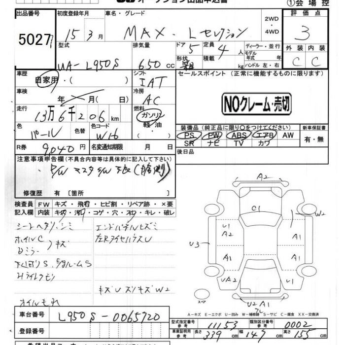 | LI SUPER SELECTION | UA-L950S | EF-VE | FF | 4AT | 659cc | 58ps(43kW)/7600rpm | AИ-92 | 1 030 000 | |