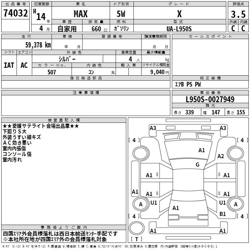 | L SELECTION | UA-L950S | EF-VE | FF | 5MT | 659cc | 58ps(43kW)/7600rpm | AИ-92 | 868 000 | |