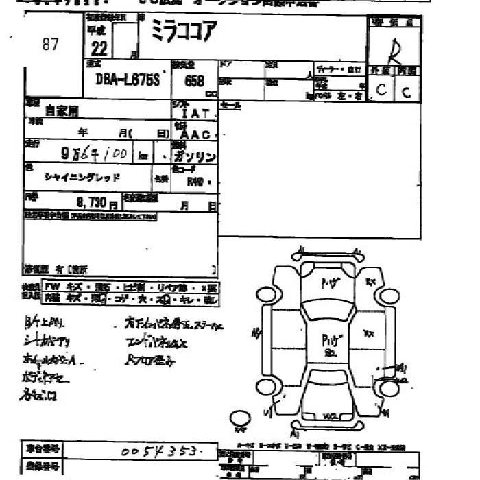 | COCOA X SPECIAL | DBA-L675S | KF-VE | FF | CVT | 658cc | 58ps(43kW)/7200rpm | AИ-92 | 1 100 000 |