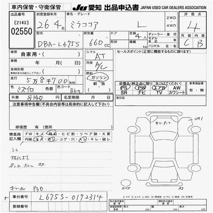 | COCOA X | DBA-L675S | KF | FF | CVT | 658cc | 52ps(38kW)/6800rpm | AИ-92 | 1 296 000 | |