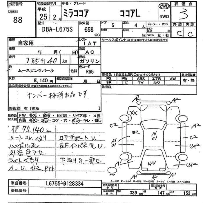 | COCOA PLUS X SPECIAL CORDE | DBA-L675S | KF | FF | CVT | 658cc | 52ps(38kW)/6800rpm | AИ-92 | 1 300 000 | |