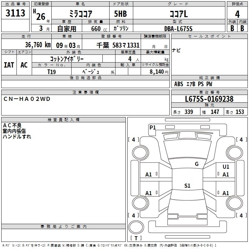 | COCOA X | DBA-L675S | KF | FF | CVT | 658cc | 52ps(38kW)/6800rpm | AИ-92 | 1 296 000 | |