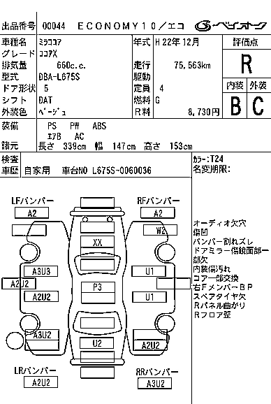 | COCOA X SPECIAL | DBA-L675S | KF-VE | FF | CVT | 658cc | 58ps(43kW)/7200rpm | AИ-92 | 1 100 000 |