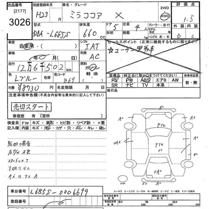 | COCOA X | DBA-L675S | KF | FF | CVT | 658cc | 58ps(43kW)/7200rpm | AИ-92 | 1 200 000 | |