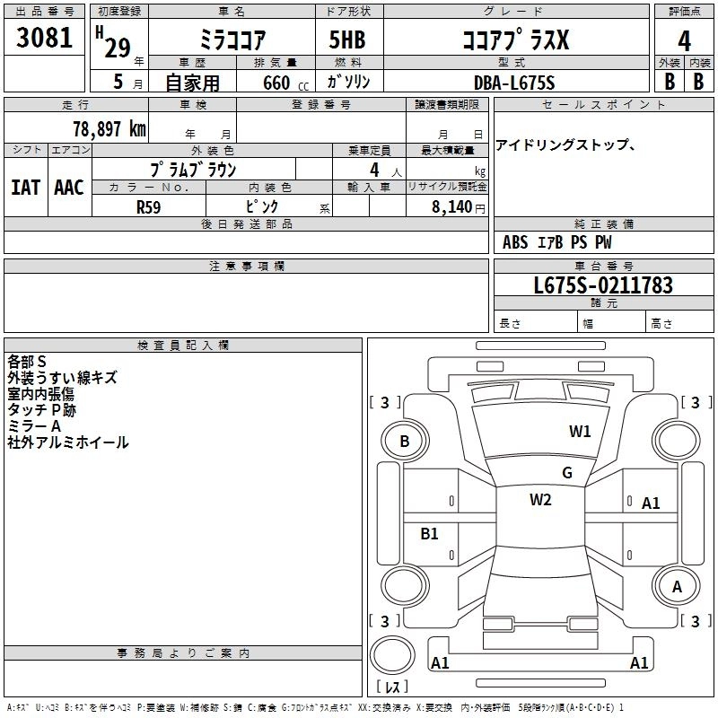 DAIHATSU MIRA COCOA 2017 г., лот № 3081