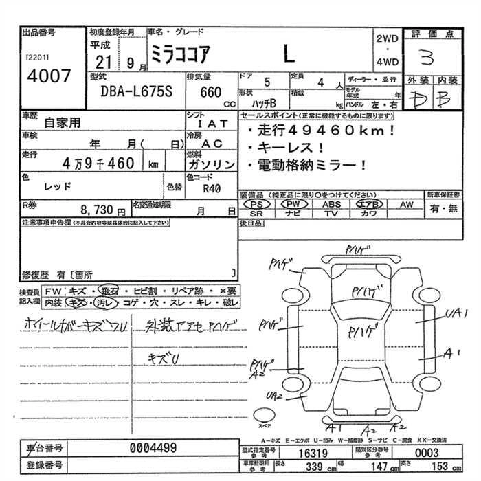 | COCOA PLUS X | DBA-L675S | KF-VE | FF | CVT | 658cc | 58ps(43kW)/7200rpm | AИ-92 | 1 250 000 | |