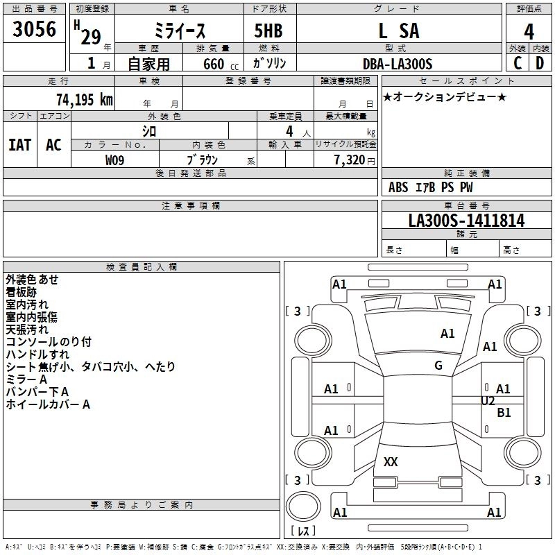 DAIHATSU MIRA E:S 2017 г., лот № 3056