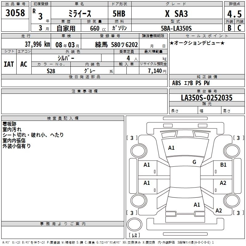 Статус выставлен на аукцион Лот 3058 Аукцион TAA Kantou Дата аукциона 29.01.2026