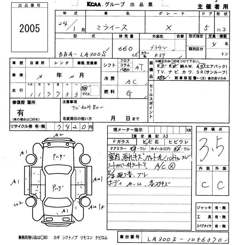 Статус продан Лот 2005 Аукцион KCAA Fukuoka Дата аукциона 29.01.2026