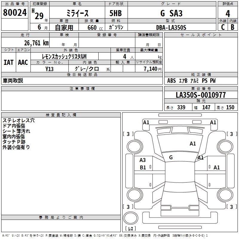 DAIHATSU MIRA E:S 2017 г., лот № 80024