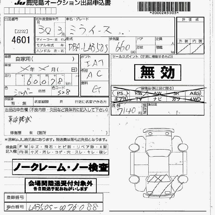 Статус продан Лот 4601 Аукцион JU Fukuoka Дата аукциона 30.01.2026