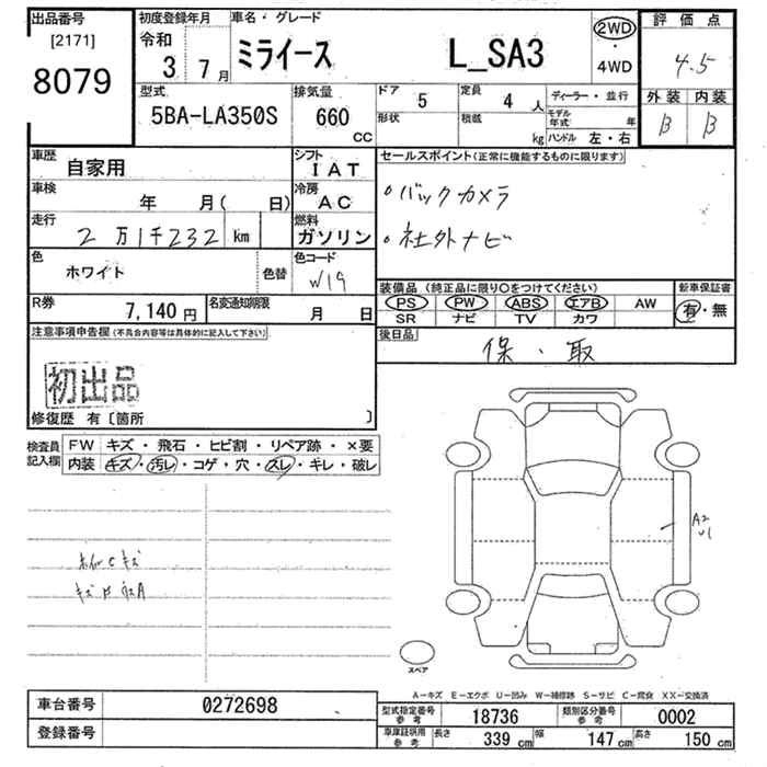 DAIHATSU MIRA E:S 2021 г., лот № 8079