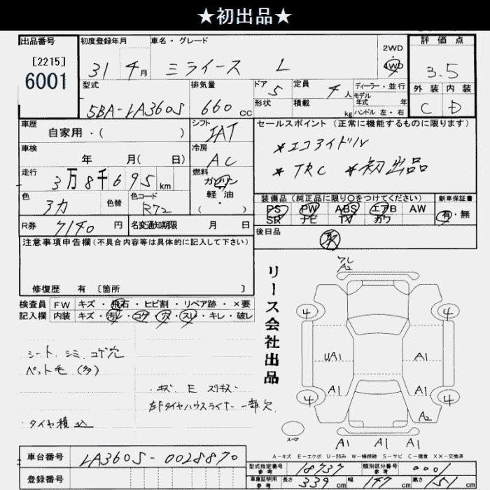 Статус выставлен на аукцион Лот 6001 Аукцион JU Saitama Дата аукциона 03.02.2026