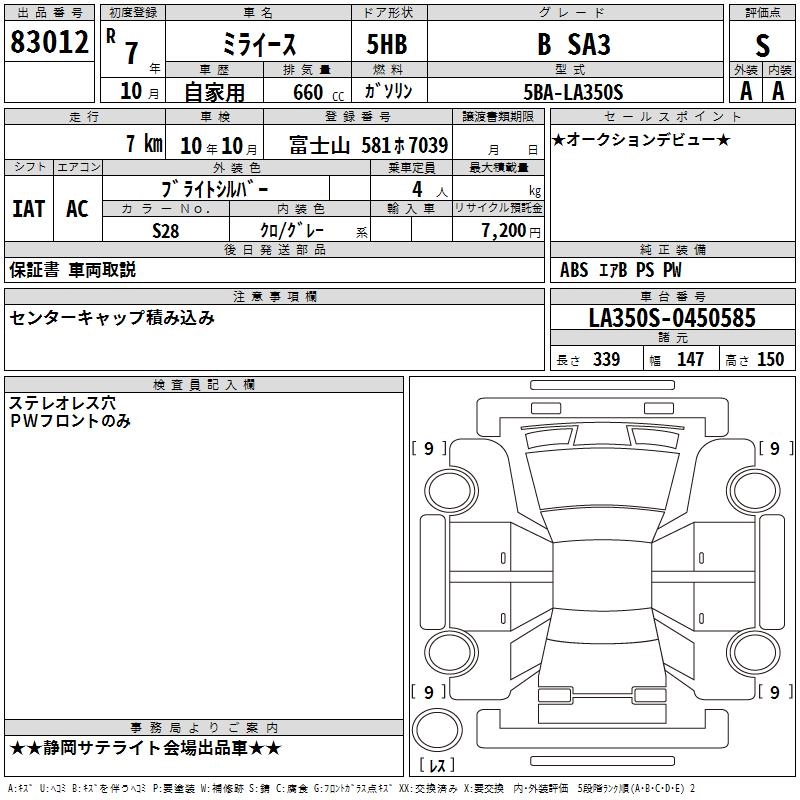 Статус выставлен на аукцион Лот 83012 Аукцион TAA Chubu Дата аукциона 05.02.2026