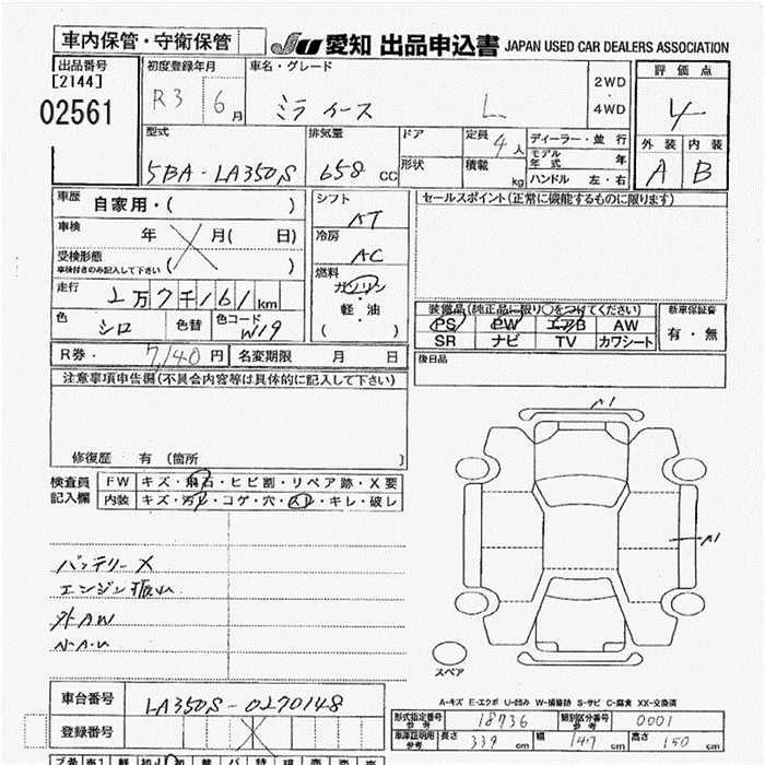 Статус выставлен на аукцион Лот 2561 Аукцион JU Aichi Дата аукциона 05.02.2026