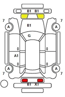 B1Маленькая вмятина с царапиной (размером с большой палец)