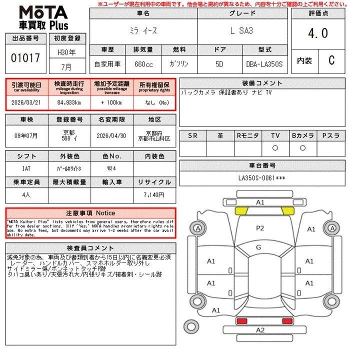 DAIHATSU MIRA E:S 2018 г., лот № 1017