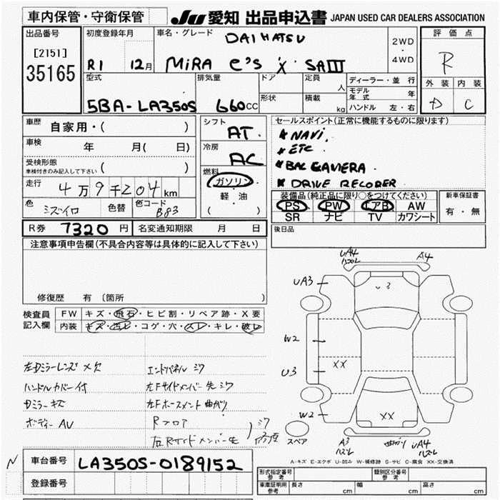 Статус продан Лот 35165 Аукцион JU Aichi Дата аукциона 26.03.2026