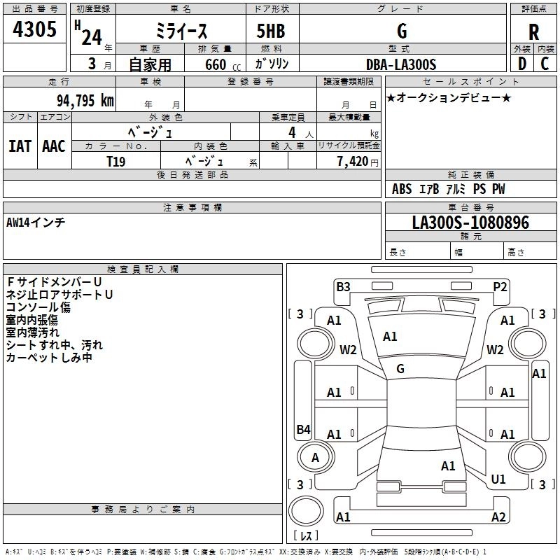 DAIHATSU MIRA E:S 2012 г., лот № 4305