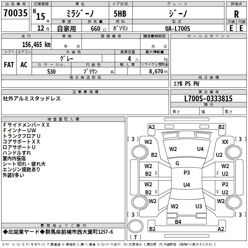 Год выпуска2003 Пробег 156 000 км КузовL700S Комплектация GINO