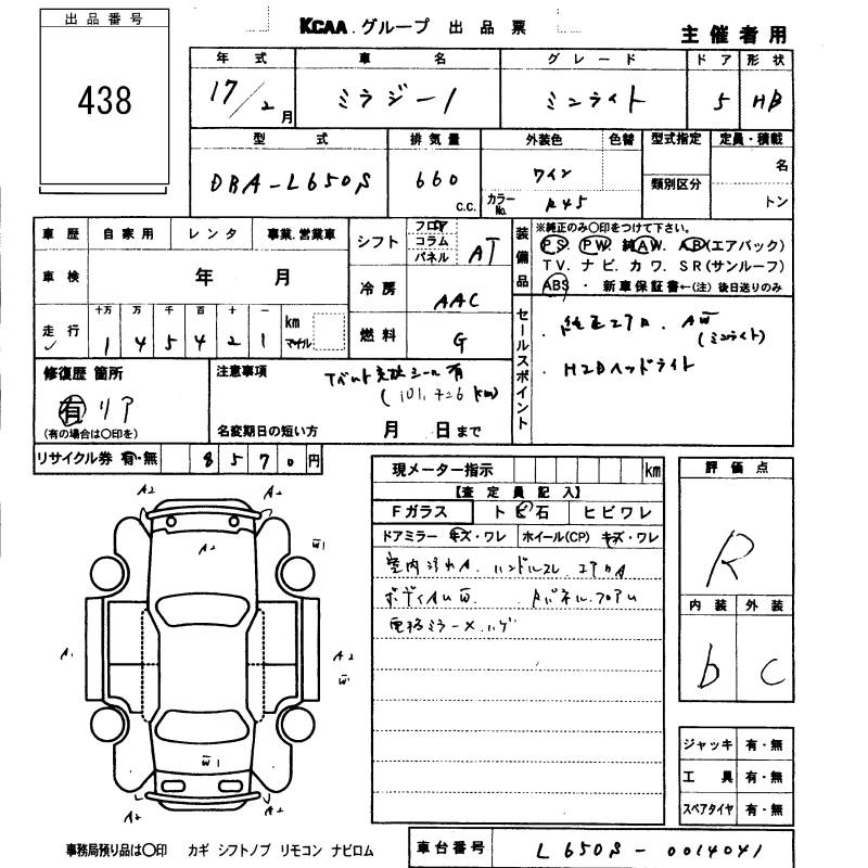 Статус выставлен на аукцион Лот 438 Аукцион KCAA Fukuoka Дата аукциона 29.01.2026