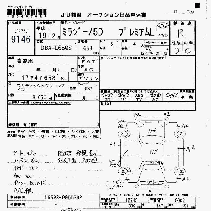 Статус не продан Лот 9146 Аукцион JU Fukuoka Дата аукциона 30.01.2026