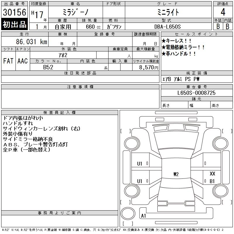 | PREMIUM X | CBA-L660S | EF-VE | Full-time 4WD | 4AT | 659cc | 58ps(43kW)/7600rpm | AИ-92 | 1 323 000 | |