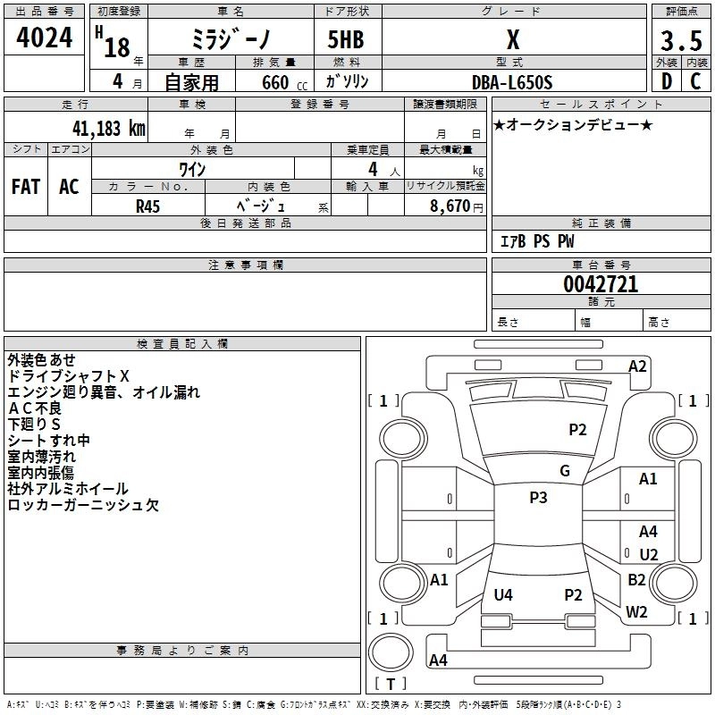 Статус выставлен на аукцион Лот 4024 Аукцион TAA Chubu Дата аукциона 05.02.2026