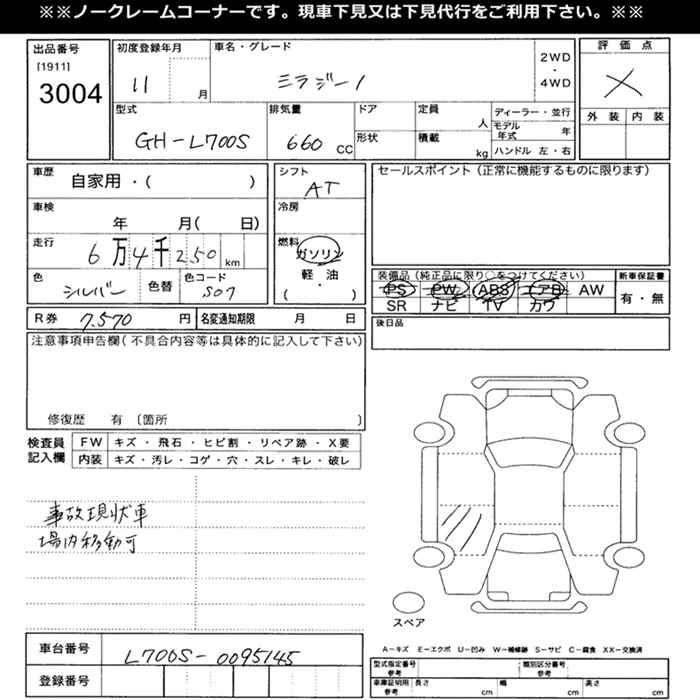 | GINO | GF-L710S | EF-VE | Full-time 4WD | 5MT | 659cc | 58ps(43kW)/7600rpm | AИ-92 | 1 023 000 |