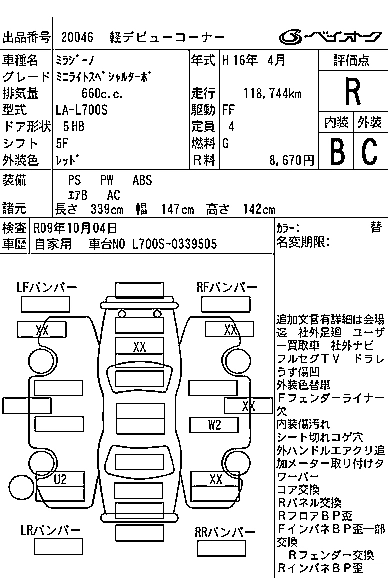 | X LIMITED | CBA-L660S | EF-VE | Full-time 4WD | 4AT | 659cc | 58ps(43kW)/7600rpm | AИ-92 | 1 302 000 | |