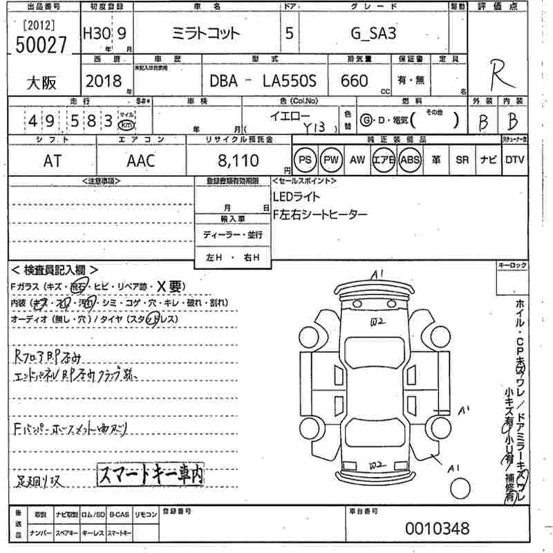 | X SA III | DBA-LA550S | KF | FF | CVT | 658cc | 52ps(38kW)/6800rpm | AИ-92 | 1 220 400 | |