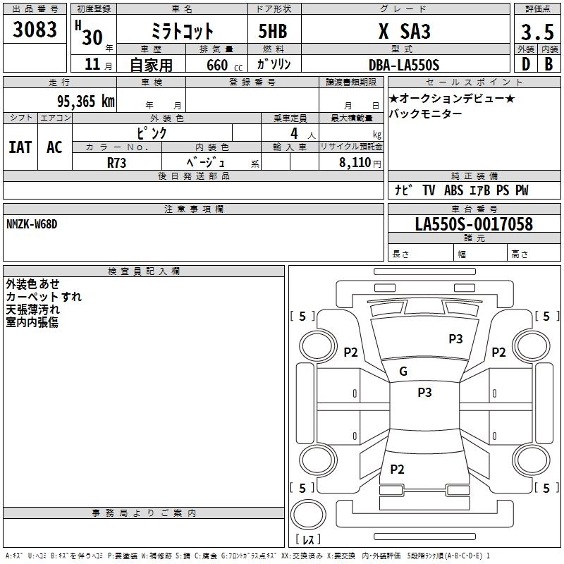 | X SA III | DBA-LA550S | KF | FF | CVT | 658cc | 52ps(38kW)/6800rpm | AИ-92 | 1 220 400 | |