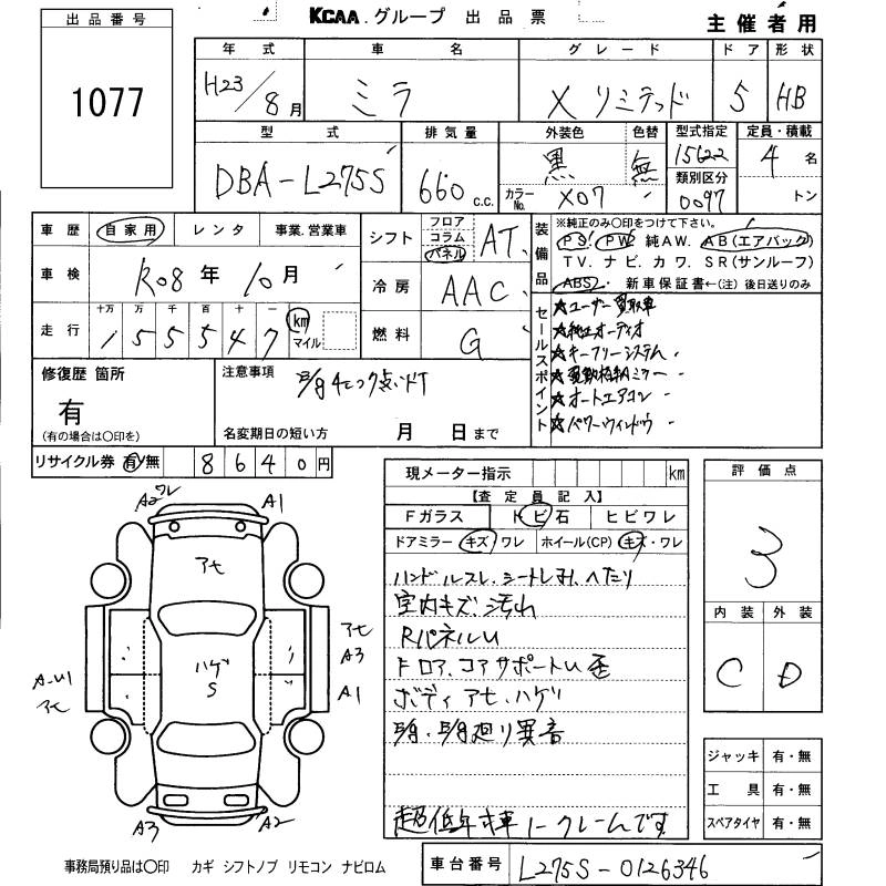 | X | DBA-L275S | KF | FF | 5MT | 658cc | 58ps(43kW)/7200rpm | AИ-92 | 950 000 | |