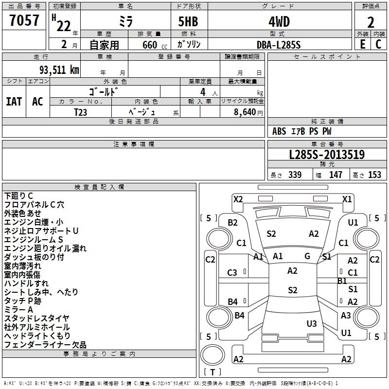 | L | DBA-L275S | KF-VE | FF | 5MT | 658cc | 58ps(43kW)/7200rpm | AИ-92 | 885 000 | |