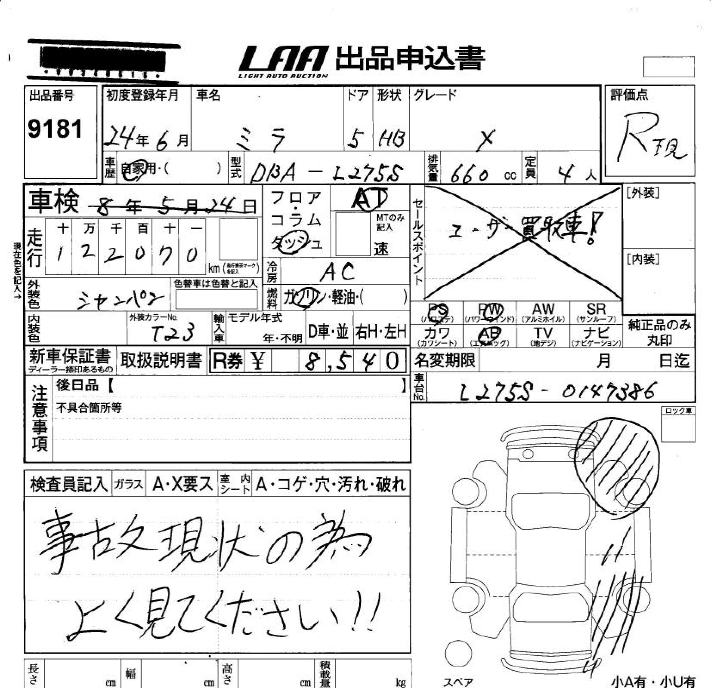 Статус выставлен на аукцион Лот 9181 Аукцион LAA Okayama Дата аукциона 30.01.2026