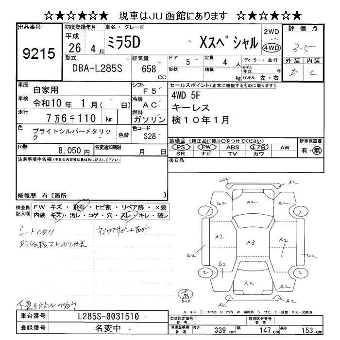 | X SPECIAL | DBA-L285S | KF | Full-time 4WD | 5MT | 658cc | 58ps(43kW)/7200rpm | AИ-92 | 1 025 486 |