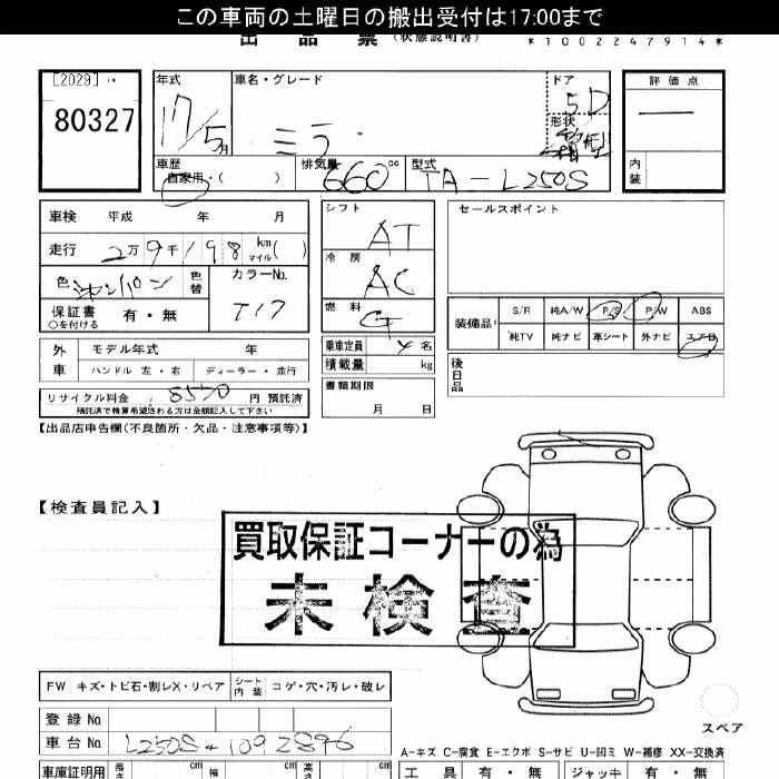 Статус выставлен на аукцион Лот 80327 Аукцион JU Gifu Дата аукциона 31.01.2026